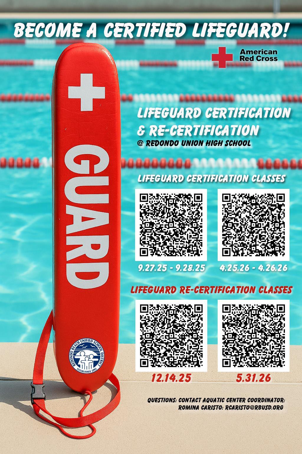 - Lifeguard Certification & Re-Certification Classes being offered. See attached flyer for class dates and registration.