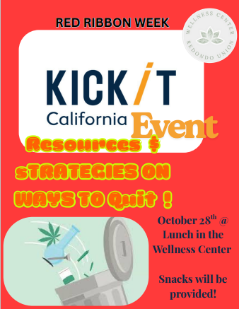 Then @ Lunch, please join us for our Red Ribbon Week Workshop where we meet to discuss strategies and ways to Quit!. Resources and Snacks will be provided."