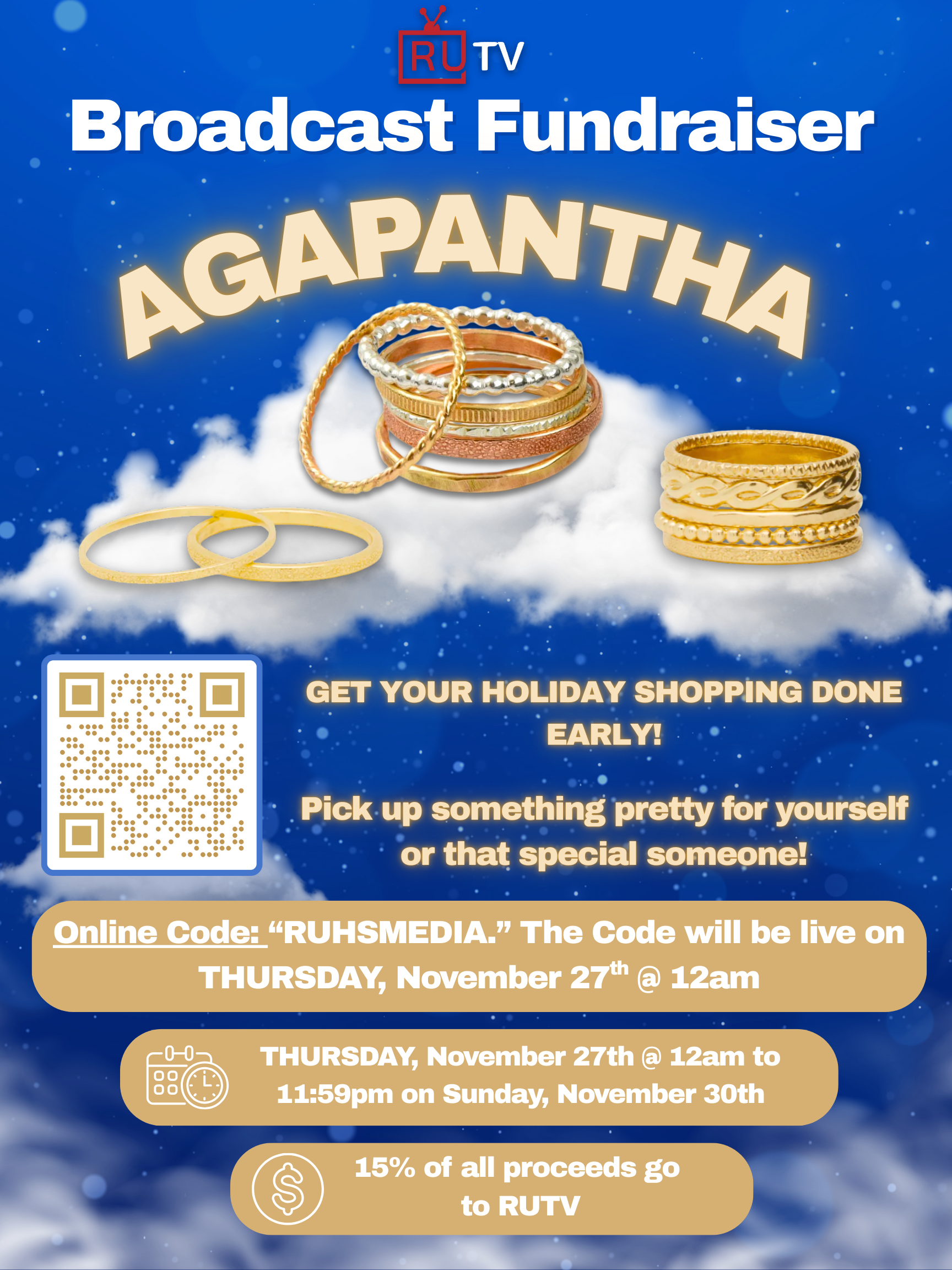 Our amazing RUHS broadcasting crew is hosting a fundraiser through AGAPANTHA, a local online jewelry shop based in Torrance, starting Thursday, Nov.27th and going until Sunday, Nov. 30th.